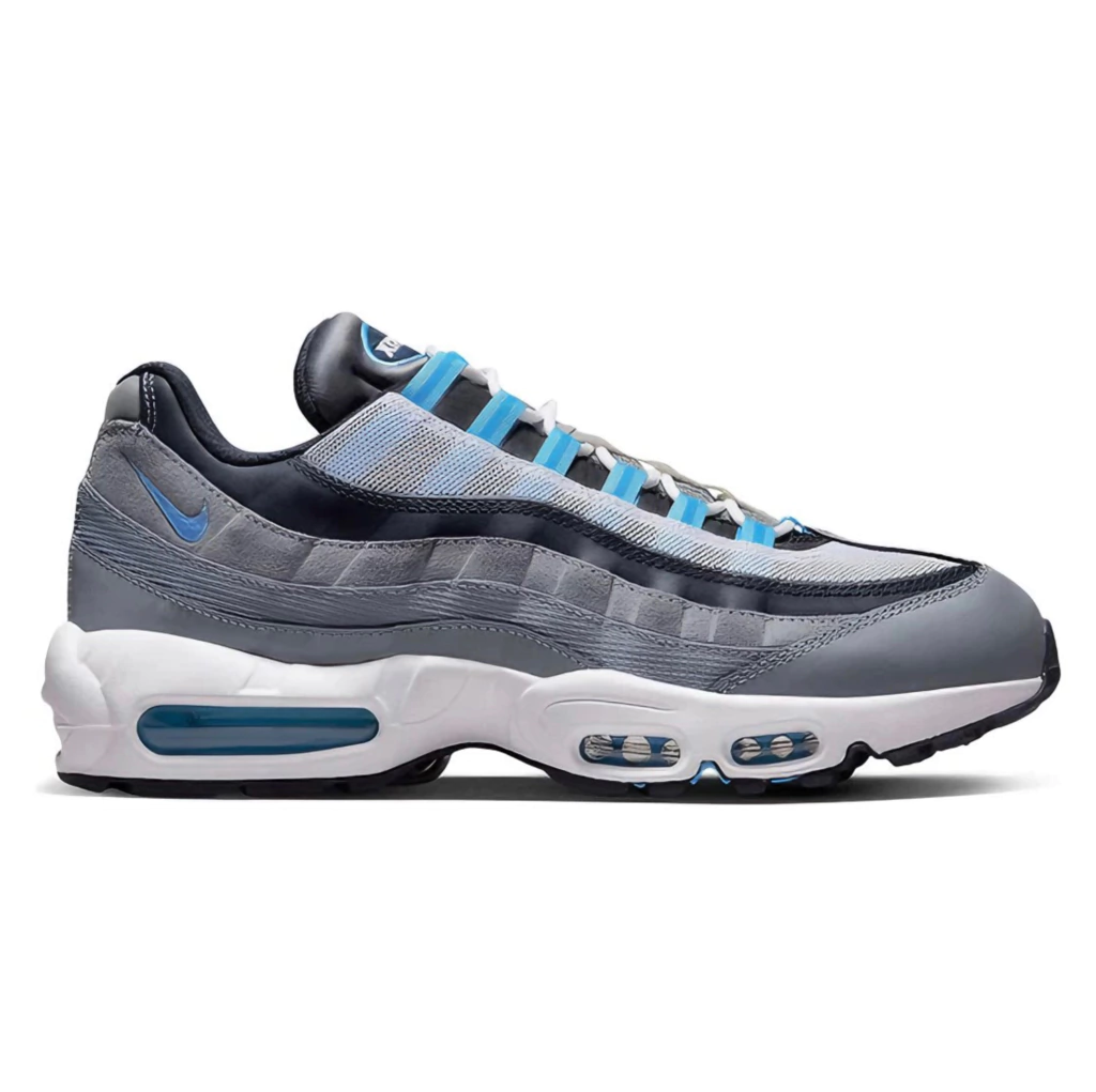 Apresentando o Air Max 95 OG 'Cool Grey University Blue', a escolha perfeita para quem gosta de sair das cores convencionais e quer unir estilo e conforto. É um calçado sofisticado e moderno. Apresentando tons de preto e azul, esse tênis combina um design estiloso com a tecnologia renovada de amortecimento Air Max visível no calcanhar. Perfeito tanto para uso casual quanto para sair com os amigos no estilo e confortável. Aprimore seu estilo e bom gosto com o tênis Air Max 95 OG 'Cool Grey University Blue'.